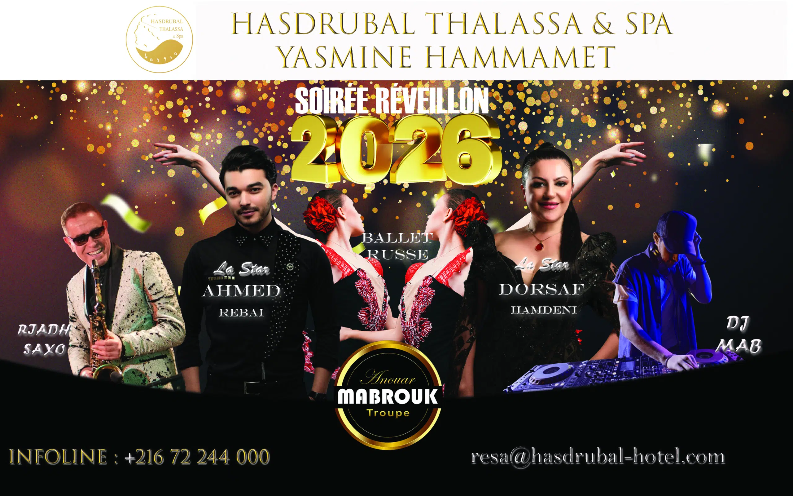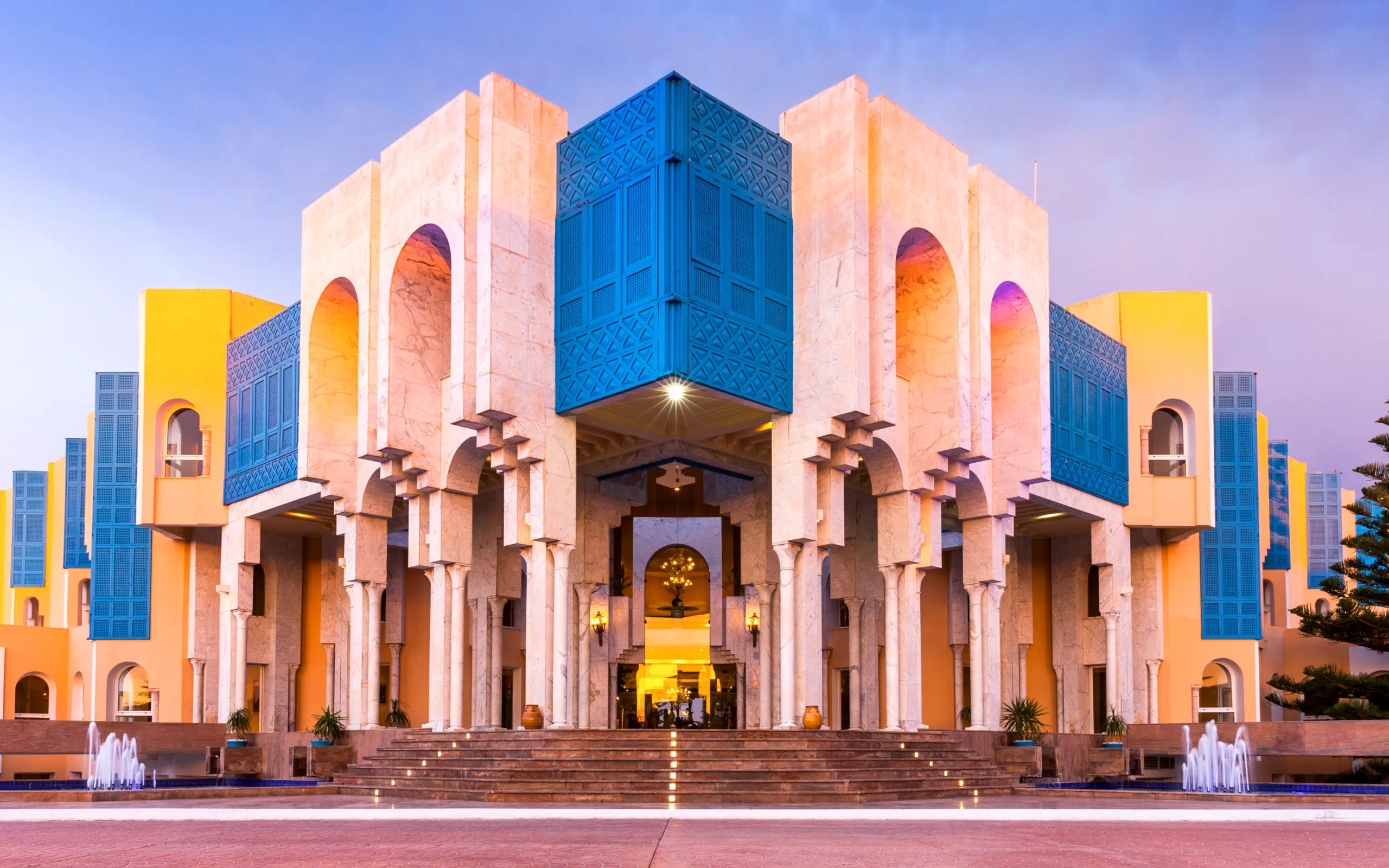 Along a huge sandy beach, HASDRUBAL Yasmine Hammamet is a sumptuous stopover where you will discover the harmonious contrast of the magnitude of the volumes and the intimacy of the different spaces, sculpted by the jets of water and light that animate its architecture, adorned by luxury and refinement down to the smallest details.